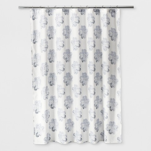 The trendy button embellishments add a unique touch to the look of your space. The curtain panel is then made into a blackout curtain through the addition of an opaque backing layer that is sewn onto the back of the curtain. The floral shower curtain measures. The classic frost white color matches perfectly with any decor. For that monochrome look, try our black and white patterned shower curtains.